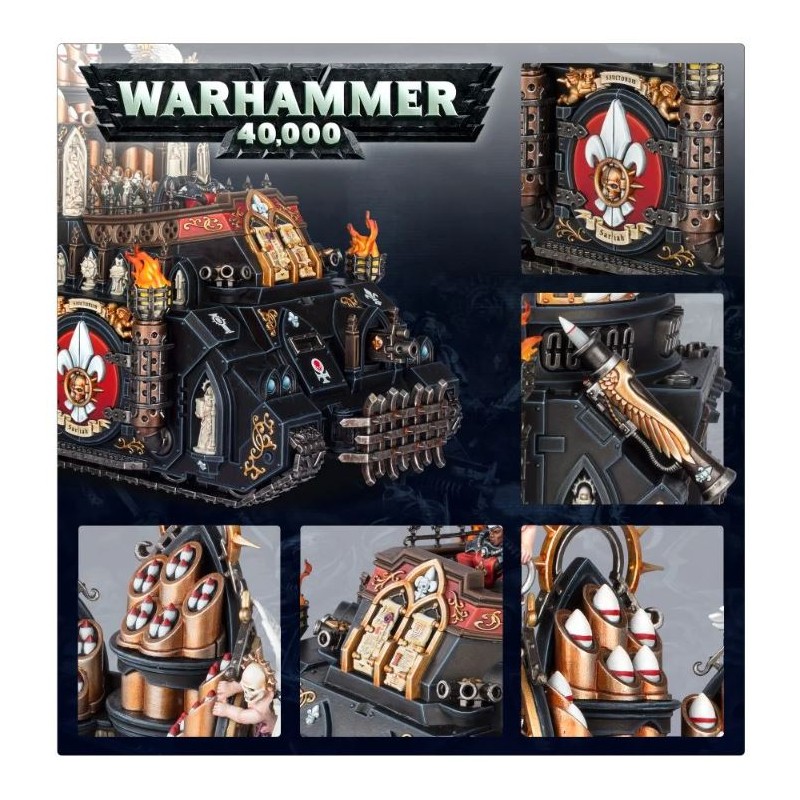 Description du produitL’Exorcist est une arme qui montre de façon unique comment l’Adepta Sororitas prouve sa dévotion envers l’Empereur-Dieu, en châtiant Ses ennemis hérétiques. Il s’agit d’un autel ambulant dédié à la magnificence du Maître de l’Humanité, une œuvre d’art éblouissante qui progresse sur le champ de bataille tout en émettant des hymnes sacrés. Ces derniers résonnent par-dessus la clameur des combats et gonflent de fierté les coeurs des soldats de l’Imperium. Lorsque des escadrons entiers de ces véhicules avancent, leurs émissions symphoniques combinées transforment un champ de bataille boueux et ensanglanté en un lieu sacré aussi glorieux que le plus gigantesque des cathedrums. Les guerriers exténués reprennent courage en percevant ces cantiques. Les soldats surclassés en nombre et apeurés tiennent de nouveau leurs positions sans faillir. Et lorsque les premières roquettes de l’Exorcist montent en hurlant dans les airs avant de s’abattre, c’est l’ennemi qui est frappé de terreur, et le cours de la bataille change subitement.