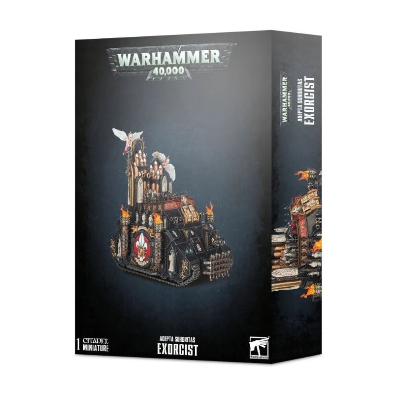 Le kit comprend 99 composants dont l'ensemble des options d'armes et d'équipement de l'Exorcist. Figurine fournie avec une planche de décalcomanies Adepta Sororitas.