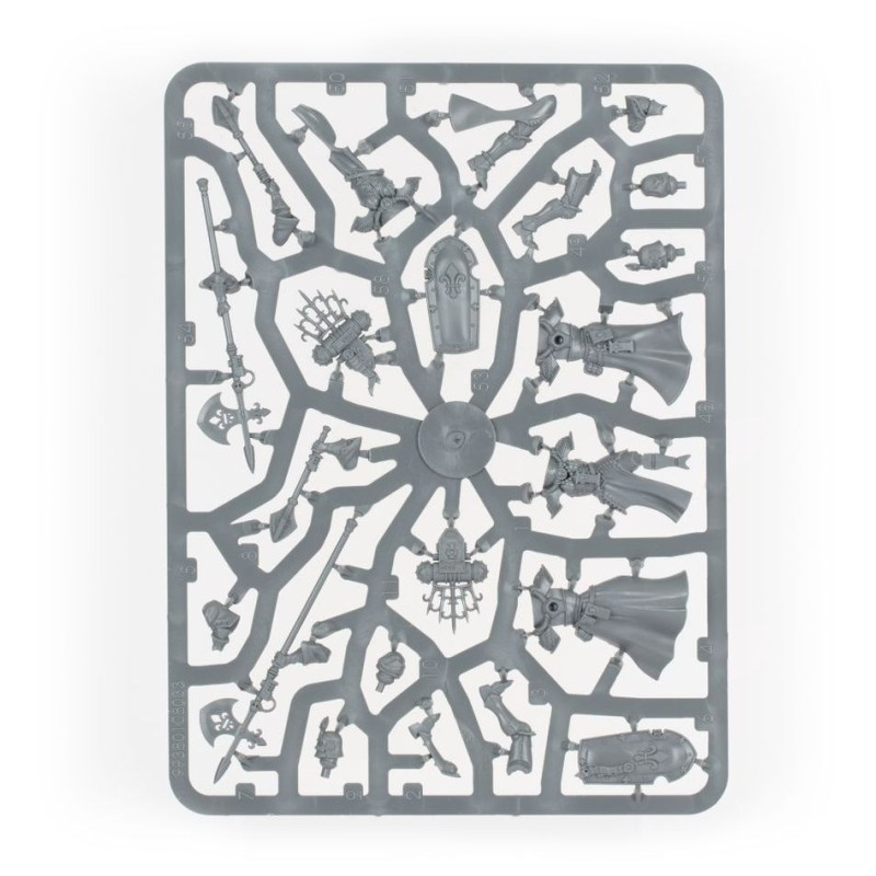 Purgez la galaxie avec la Patrouille: Adepta Sororitas. Cette boîte pleine à craquer contient une armée polyvalente et équilibrée, menée par une puissante Chanoinesse. Elle est elle-même protégée par une garde du corps d'élite de Célestes Sacro-saintes, équipées pour le combat rapproché. Le cœur de l'armée est une unité complète de Sœurs de Bataille qui s'entoure d'une horde d'Arco-flagellants, prêts à charger la tête la première dans la mêlée au mépris de leur propre sécurité.