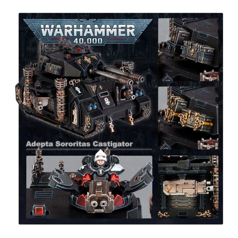 Le Castigator est une relique ancienne couverte d'ornements gothiques et d'iconographie classique de l'Adepta telle que la fleur de lis. On peut l'assembler avec un obusier Castigator ou des autocanons Castigator en guise d'armement principal, et il y a diverses options d'équipement et d'artilleuse, les braseros pouvant par ailleurs être montés de sorte à sembler allumés ou éteints.