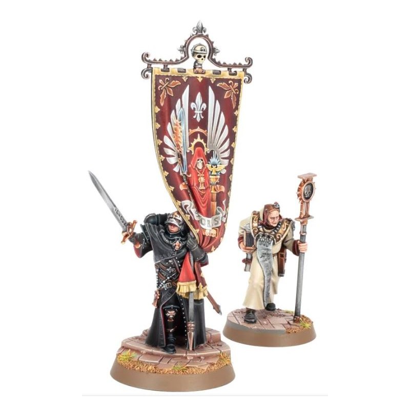 Brandissez l'étendard de la foi et encouragez vos guerrières de l'Adepta Sororitas à redoubler d'ardeur combattante. Dotée d'une relique légendaire, Aestred s'intègre tout naturellement dans votre collection de Sœurs de Bataille, tout en offrant un intéressant sujet de peinture grâce aux diverses textures de la figurine.