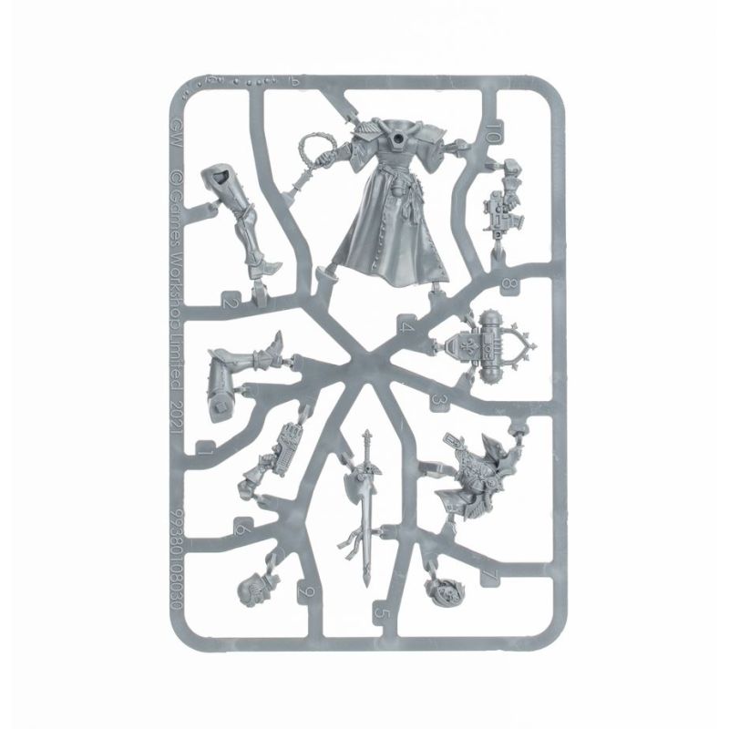 Les Sœurs Repentia disposent chacune d'un choix de 2 têtes et positions de bras. La Repentia Supérieure dispose d'un choix de deux têtes, une casquée et une nue, et peut être équipée d'une paire de fouets neuraux ou d'un grimoire saint. Vous trouverez également 3 sceaux de pureté interchangeables qui peuvent être ajoutés aux figurines.
