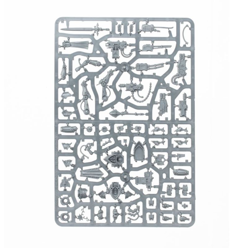 Chaque Exo-harnais Parangon peut être armé d'une masse de guerre Parangon ou d'une lame de guerre Parangon, d'un bolter lourd, d'un lance-flammes lourd Ministorum ou d'un multi-fuseur, ainsi que de bolters Storm Parangon ou d'un lance-grenades Parangon. Chaque pilote dispose d'un choix de 3 têtes: 1 casquée et 2 nues. Vous trouverez également les éléments nécessaires pour assembler une Sœur Supérieure optionnelle.