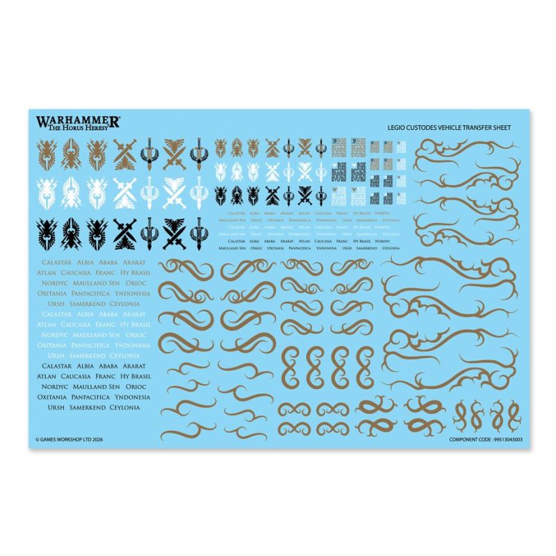 – 1 Planche de Décalcos de Véhicule de la Legio Custodes