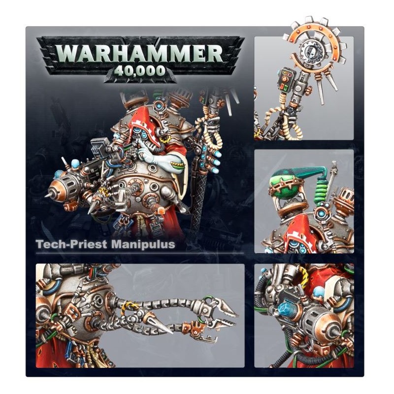 La figurine de Tech-Priest Manipulus porte un bâton de l’Omnimessie, et a le choix entre un canon transsonique lacérateur d'infanterie et une lance magnarail anti-blindés en guise d'arme de tir. Le Manipulus dispose aussi d'un harnais de mécadendrites pour mieux procéder à des réparations sur le champ de bataille, et pour arracher des morceaux aux ennemis qui s'aventureraient trop près!