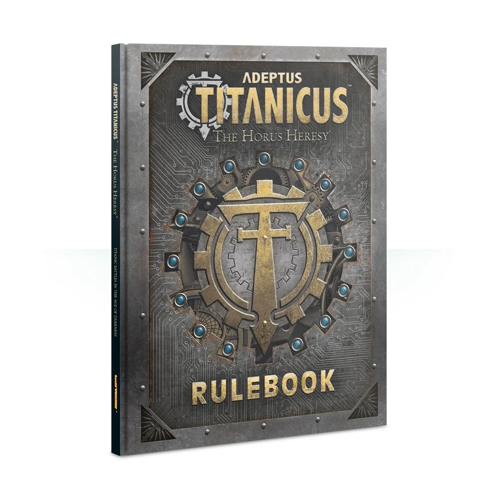 - 1 livre de règles Adeptus Titanicus de 96 pages à couverture souple. Il contient les règles complètes du jeu, et vous enseignera les bases tout en vous présentant des règles et des tactiques avancées, ainsi que trois façons différentes de jouer.