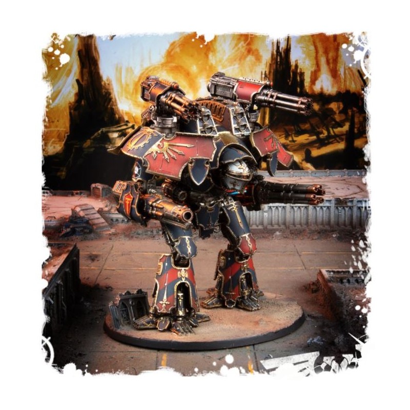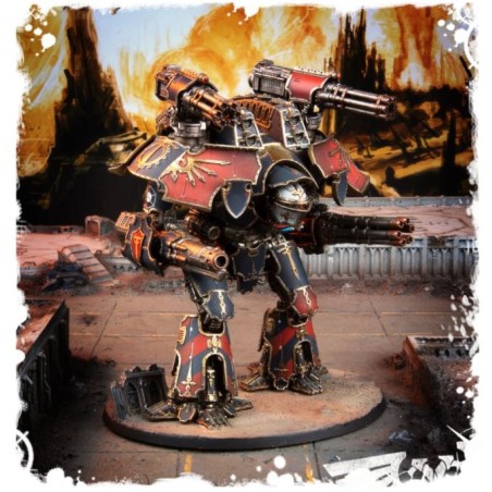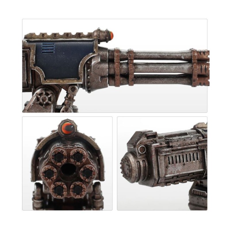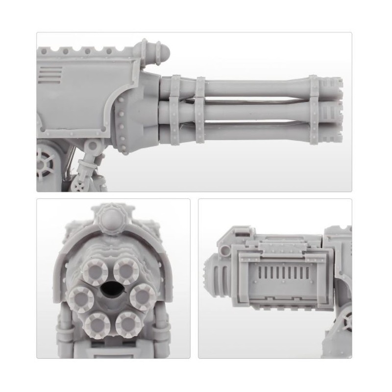 Équipez votre Warlord Battle Titans d'une paire de macro-gatling blasters. Ces armes à tir rapide sont parfaites pour retirer les boucliers d'un grand Titan ou pour dévaster les bannières des Chevaliers Impériaux.