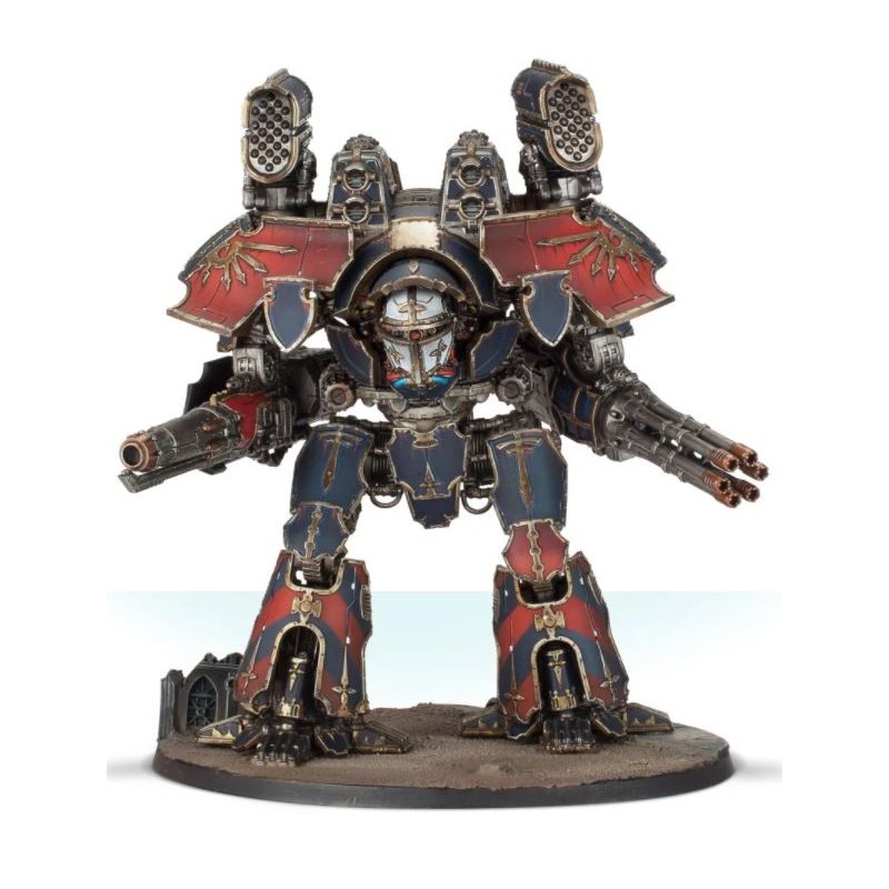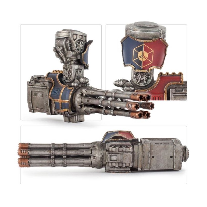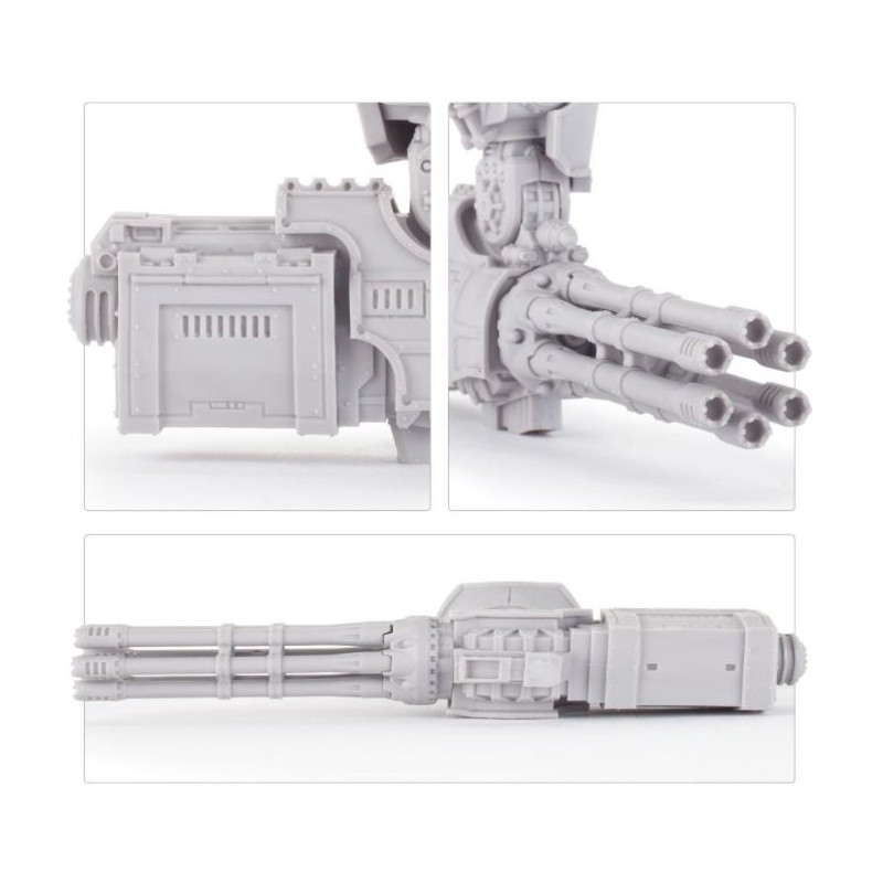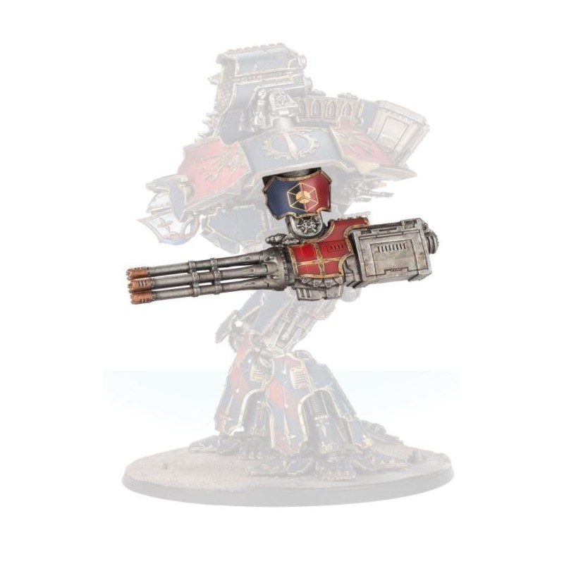 Équipez vos Warlord Battle Titans d'un macro-gatling blaster. Cette arme à tir rapide peut relancer les coups manqués pour refléter le poids de ses tirs. Elle est parfaite pour briser les boucliers d'un Titan plus grand ou pour dévaster les bannières des chevaliers impériaux.
