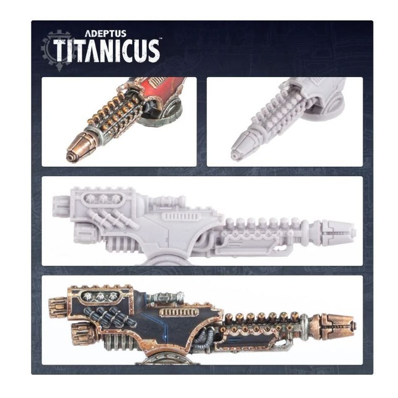 Une carte d'armes détaillant les règles d'utilisation de cette arme dans vos parties d'Adeptus Titanicus est incluse.