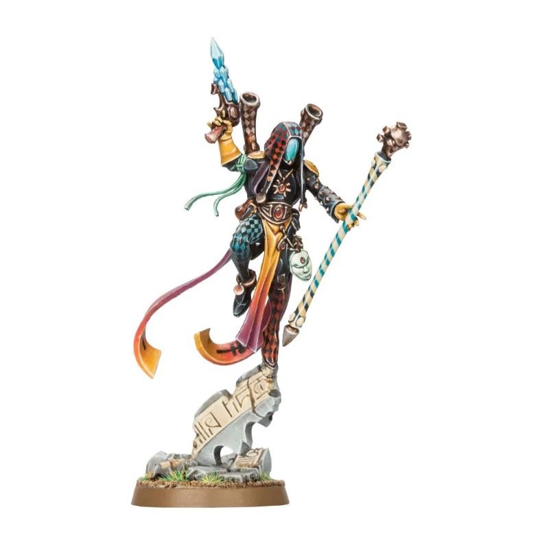 Description du produitCe kit plastique de 11 pièces permet d'assembler un Harlequin Shadowseer armé d'un pistolet shuriken, d'un bâton Mist et d'un lance-grenades hallucinogènes. Le pistolet shuriken peut être remplacé par un neuro disrupteur, également inclus. Figurine fournie avec un socle de 25mm.