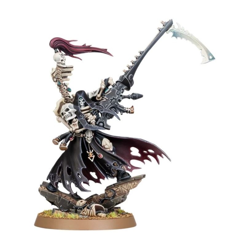 Description du produitMaugan Ra, également appelé Moissonneur des Âmes, est le Seigneur Phénix des Faucheurs Noirs – un des Aspects les plus sinistres et menaçants des Asuryani. Maître dans l’art de tuer à distance, Maugan Ra manie le Maugetar. Cette arme en forme de faux tire des shurikens à lien mental assez larges pour décapiter un groupe d’ennemis avant de disparaître. Si l’ennemi survit à ce déluge, il aura tôt fait de succomber au tranchant recourbé de la lame de faux intégrée au Maugetar.