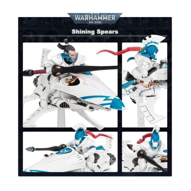 Ce kit permet d'assembler une unité de Lances Étincelantes, chacune armée d'une lance laser et chevauchant une motojet équipée de catapultes shuriken jumelées. Une figurine peut être assemblée en tant qu'Exarque Lance Étincelante, pouvant être armé d'une lance stellaire ou d'un sabre de parangon en plus d'un bouclier miroitant. Sa motojet peut être dotée d'un redoutable canon shuriken, et lui-même a 4 options de tête, tandis que chaque Lance Étincelante peut avoir une tête nue ou casquée.