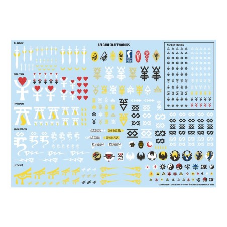 Ce kit est composé de 168 éléments en plastique, de 10x Socles Ronds Citadel de 28,5mm, et de 2x Socles Ronds Citadel de 25mm. Il contient aussi 1x Planche de Décalcos des Vaisseaux-mondes, proposant 378x décalcos de qualité pour personnaliser encore plus vos figurines.