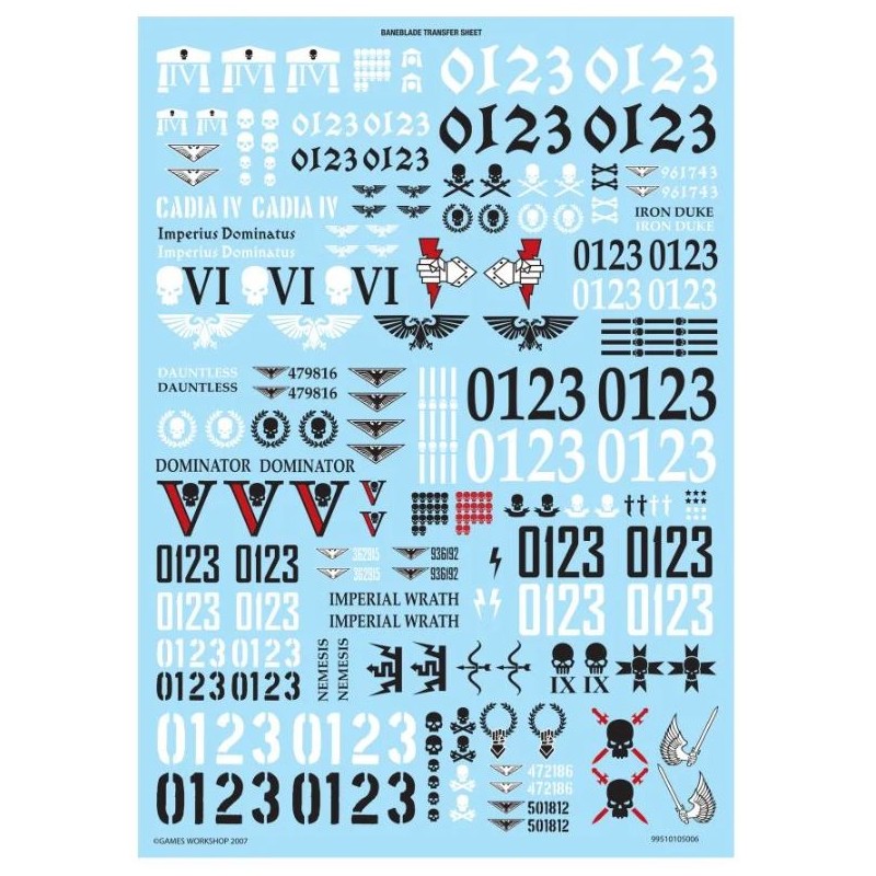 Ce kit est composé de 381 éléments en plastique et d'une planche de décalcomanies de Baneblade avec 253 décalcos. Cette figurine est fournie non peinte et nécessite assemblage