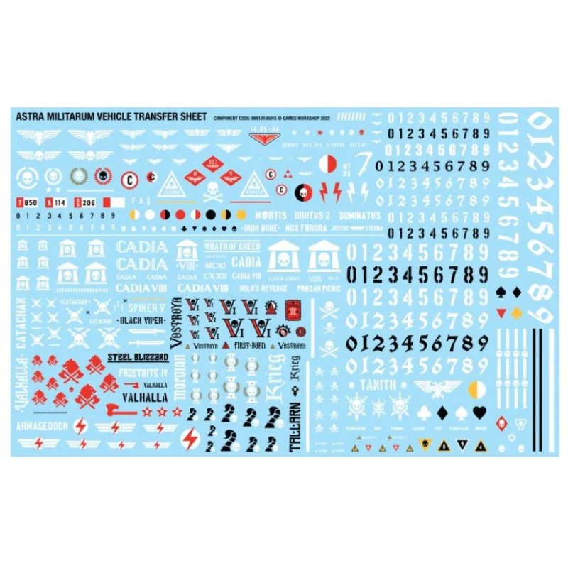 Ce kit est composé de 171 éléments en plastique et est fourni avec une planche de décalcomanies de Véhicules de l'Astra Militarum avec 475 décalcos proposant des numéros, des symboles et diverses héraldiques régimentaires. Cette figurine est fournie non peinte et nécessite assemblage