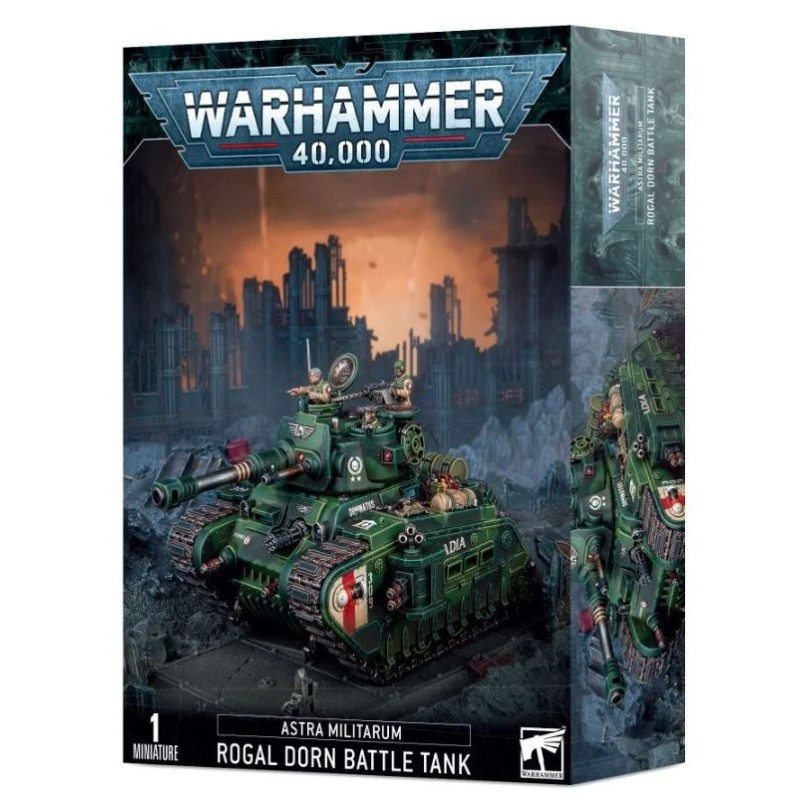 Ce kit plastique permet d'assembler un Char de Combat Rogal Dorn, une plateforme de tir mobile encore plus imposante que le puissant Char de Combat Leman Russ. L'arme principale du Rogal Dorn est montée en tourelle : vous avez le choix entre la cadence de tir élevée d'un obusier jumelé ou la redoutable puissance d'un canon Oppressor avec autocanon coaxial monté à côté. Un deuxième emplacement sur la coque peut recevoir un canon gatling Castigator pour massacrer les hordes d'infanterie ou un canon Pulveriser pour éliminer les cibles blindées.