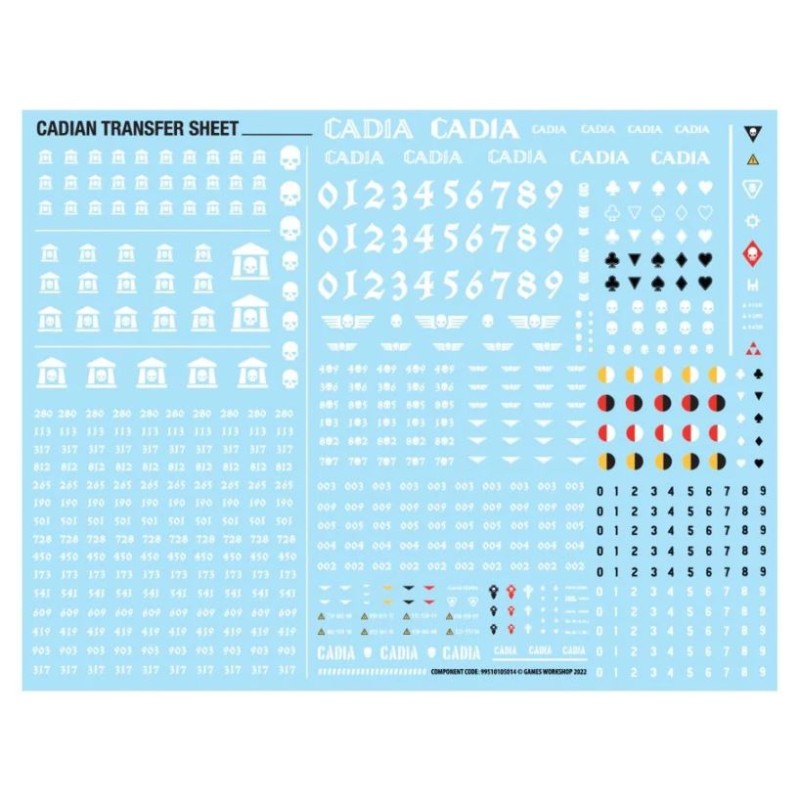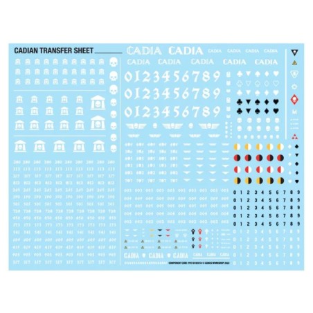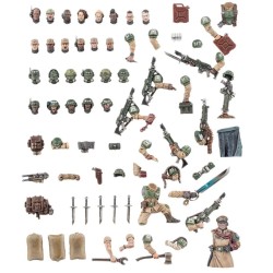 Ce kit est composé de 127 éléments en plastique et est fourni avec 3x socles ronds Citadel de 50 mm. Il contient également une Planche de Décalcomanies d'Infanterie de l'Astra Militarum avec 597 décalcos proposant des numéros, des marquages d'escouade et l'héraldique régimentaire cadienne. Ces figurines sont fournies non peintes et nécessitent assemblage