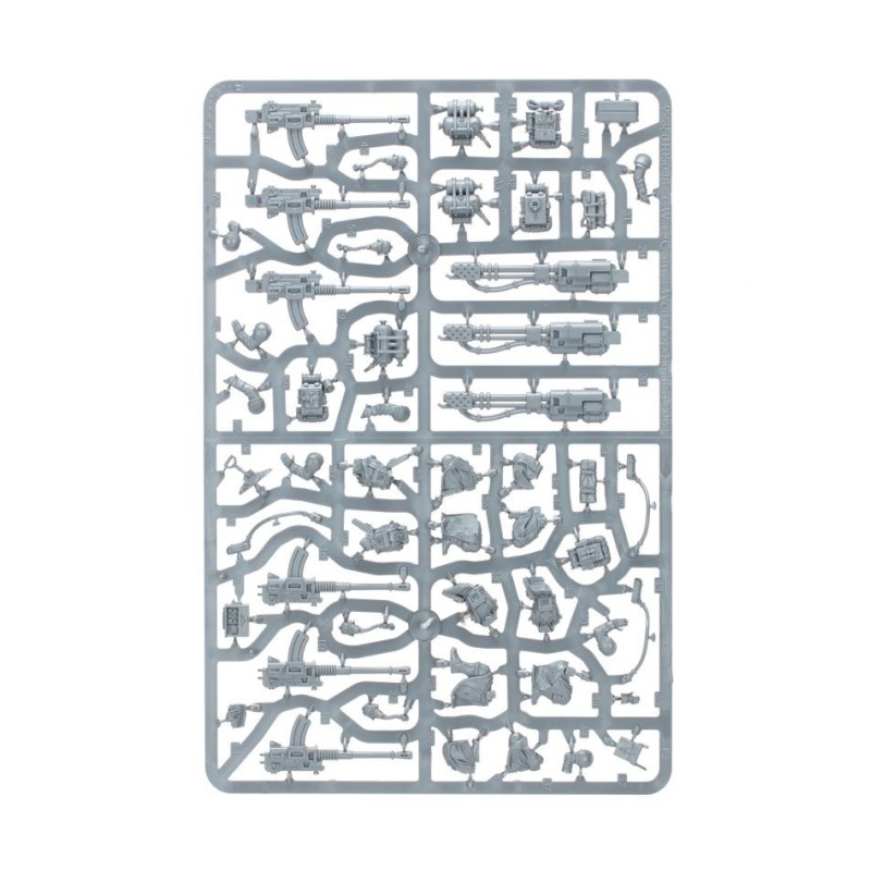 Cette boîte permet d'assembler 26 figurines en plastique de l'Astra Militarum: