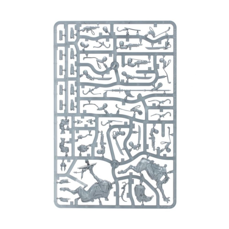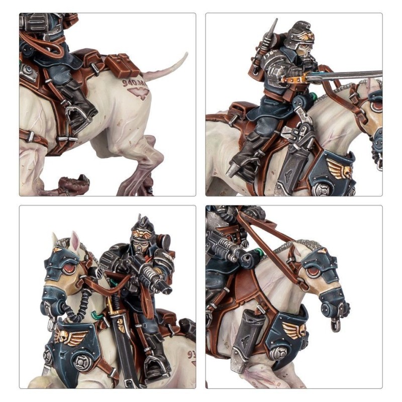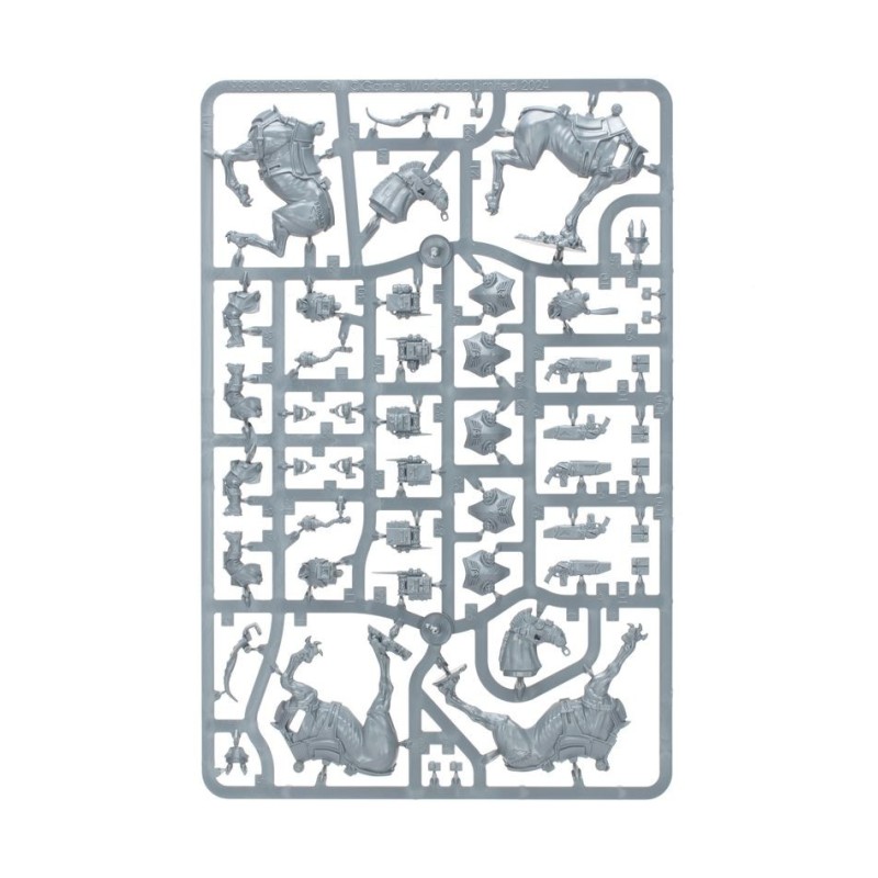 Les figurines de cette boîte sont faciles à personnaliser. Les Cavaliers de Krieg peuvent chacun être armés d'un sabre énergétique, d'une lance Frag ou d'une carabine de Cavalier de Krieg. Vous disposez des éléments nécessaires pour assembler un chef d'escouade optionnel, ainsi que de nombreux éléments esthétiques, incluant différents modèles d'étuis.