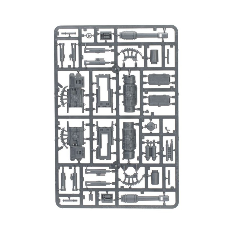 Cette boîte pleine à craquer est parfaite pour entamer une nouvelle collection du Death Korps de Krieg ou pour étoffer une armée existante que vous pourrez ensuite déchaîner dans les parties de Warhammer 40,000, en faisant des économies par rapport à un achat des kits au détail. Cette force écrasante est menée par une Escouade d'État-major comprenant un inquiétant Seigneur Commissaire. Le gros de cette formation est composé d'infanterie polyvalente du Death Korps de Krieg, en assez grand nombre pour contrôler le champ de bataille. Elle est soutenue par une unité de Sapeurs de Krieg et deux imposantes Équipes d'Artillerie pour faire pleuvoir la mort sur vos adversaires.
