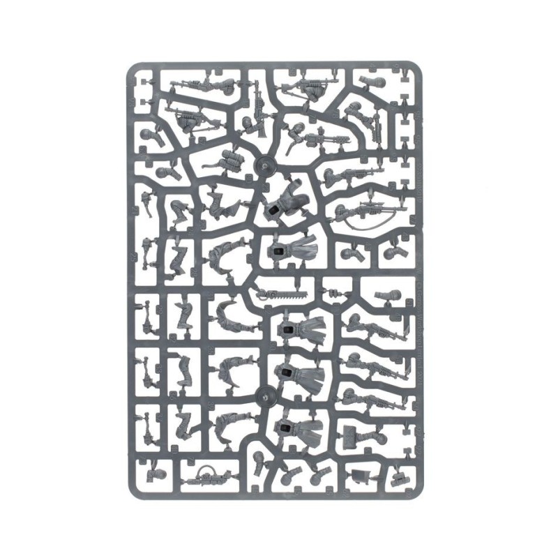 Cette boîte permet d'assembler 35 figurines en plastique de l'Astra Militarum: