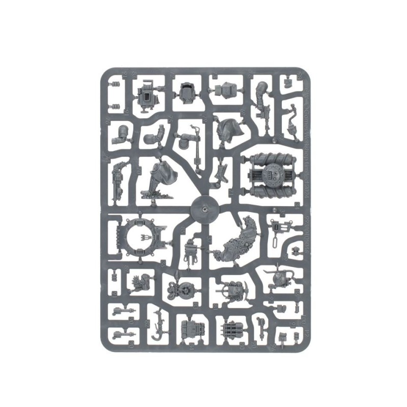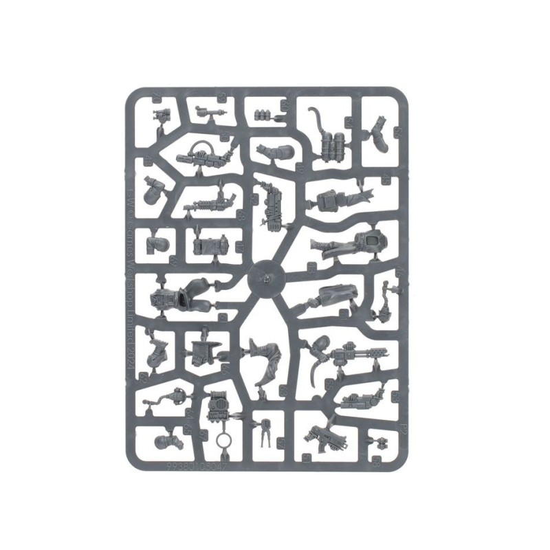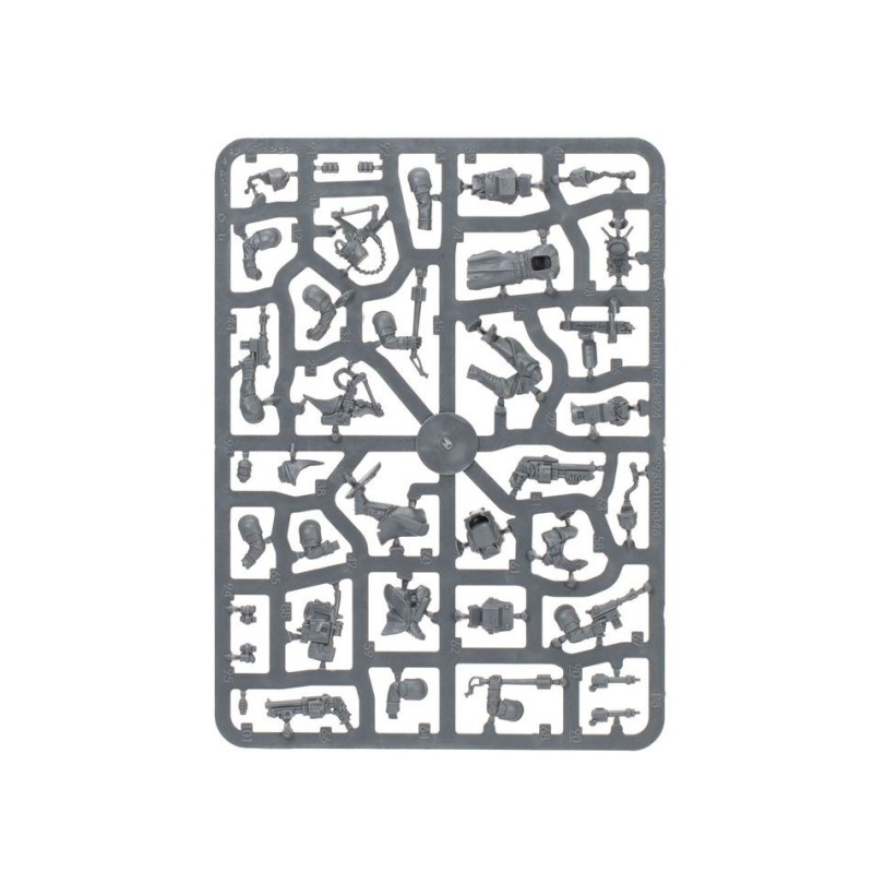 Jusqu'à deux fantassins du Death Korps de Krieg peuvent être assemblés comme Maîtres du Guet, chacun armé d'un pistolet à plasma, d'un pistolet laser ou d'un pistolet bolter, ainsi que d'une épée tronçonneuse ou d'une arme énergétique. Jusqu'à deux fantassins peuvent être chacun armés d'un fusil laser long, deux d'un lance-grenades, deux d'un lance-flammes et deux d'un fuseur ou d'un fusil à plasma. Les opérateurs vox peuvent chacun être assemblés avec des jumelles ou une grenade dans la main gauche, et jusqu'à deux figurines peuvent être assemblées équipées d'un médipac. Vous trouverez également de nombreuses options esthétiques, dont des baïonnettes, des outils de tranchée, des sacoches de ceinture, des grenades, et bien plus encore.