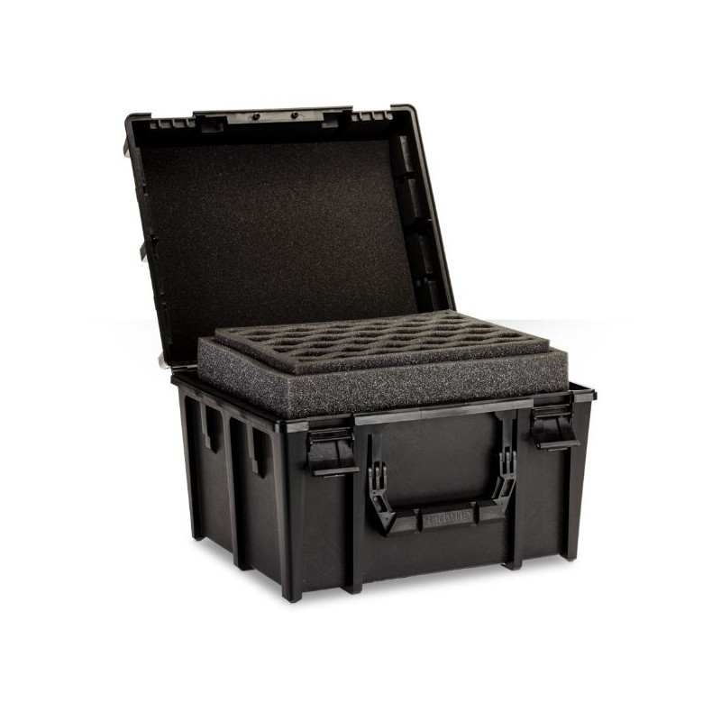 Nous savons que vous voulez protéger vos figurines du mieux possible - la mousse contenue dans la mallette est légèrement plus volumineuse que cette dernière, et elle se comprime autour des figurines quand on ferme la mallette, immobilisant au maximum n'importe quel type de figurine. Il y a aussi des fermoirs en nylon à l'épreuve des chutes. Pour garantir la solidité des parties les plus sollicitées, le dos est renforcé par un gond métallique au poids rassurant. Nous savons aussi que les figurines prennent beaucoup de place, c'est pourquoi les mallettes Skirmish et Battle sont conçues pour s'empiler et faciliter le rangement.
