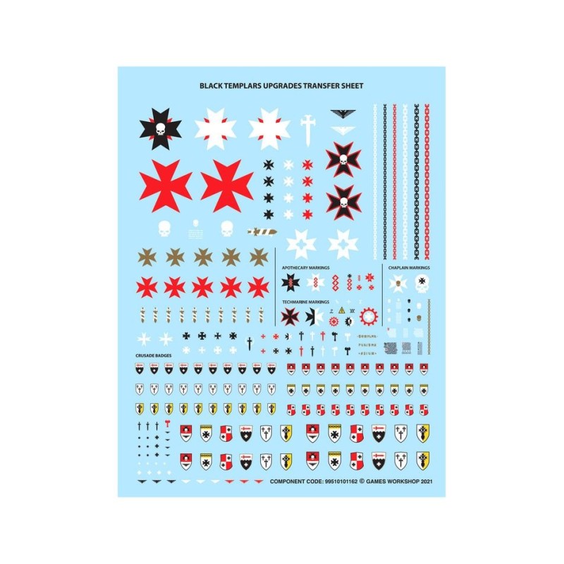 Ce kit est composé de 468 éléments en plastique, de 10x Socles Ronds Citadel de 40mm, de 4x Socles Ronds Citadel de 28mm, de 6x Socles Ronds Citadel de 32mm et de 2x Planches de Décalcos d'Améliorations Black Templars, comprenant chacune 240 décalcos de grande qualité pour personnaliser vos figurines.