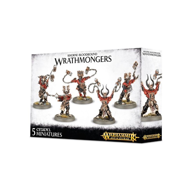 Chaque Wrathmonger est armé d'une paire de fléaux de hargne. Il y a cinq têtes casquées et la possibilité de distinguer le champion grâce à un heaume modelé à l'effigie d'un sanguinaire, et à une mutation sous la forme d'une queue de scorpion.