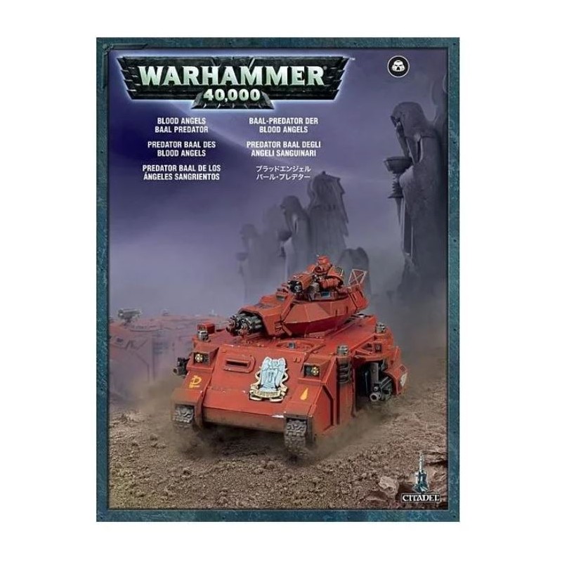 Description du produitLe Predator Baal est une variante spécialisée du Predator. L’armement du Baal est de loin le mieux adapté au style de combat rapproché des Blood Angels, utilisant des canons d’assaut jumelés pour déchiqueter les formations ennemies. Equipé d'un canon Tempête de Feu, il est capable de nettoyer rapidement les bunkers et les barricades.