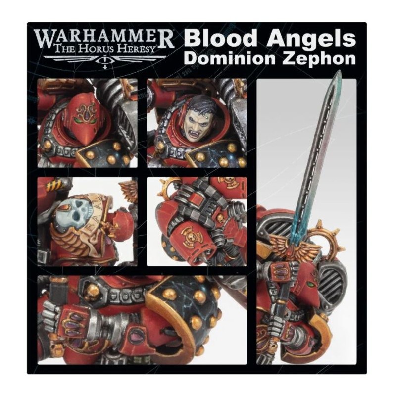 Sorti dans le cadre de Black Library Celebration 2022, Dominion Zephon se lance dans la bataille avec l'aide de pièces bioniques conçues par Arkhan Land, de son pack de sauts et d'une armure resplendissante sur le thème des Blood Angels. Il est armé de son épée à deux mains, le Spiritum Sanguis, et de deux pistolets volkite, "Lament" et "Sorrow". Ses règles sont disponibles en téléchargement gratuit sur le site Web de la communauté Warhammer, vous permettant d'ajouter le Bearer of Regret à votre hôte de combat Blood Angels.
