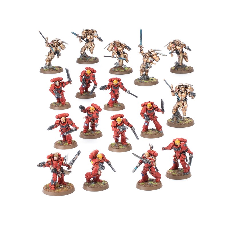 Ce set vous permet de faire des économies par rapport à l'achat individuel de chaque kit, c'est donc un excellent moyen pour démarrer une armée ou enrichir une collection existante. Ces figurines peuvent également être utilisées en tant que force Blood Angel complète pour vos parties de Warhammer 40,000 au format Patrouille. Les règles du format Patrouille sont disponibles en téléchargement gratuit sur le site web Warhammer Community.