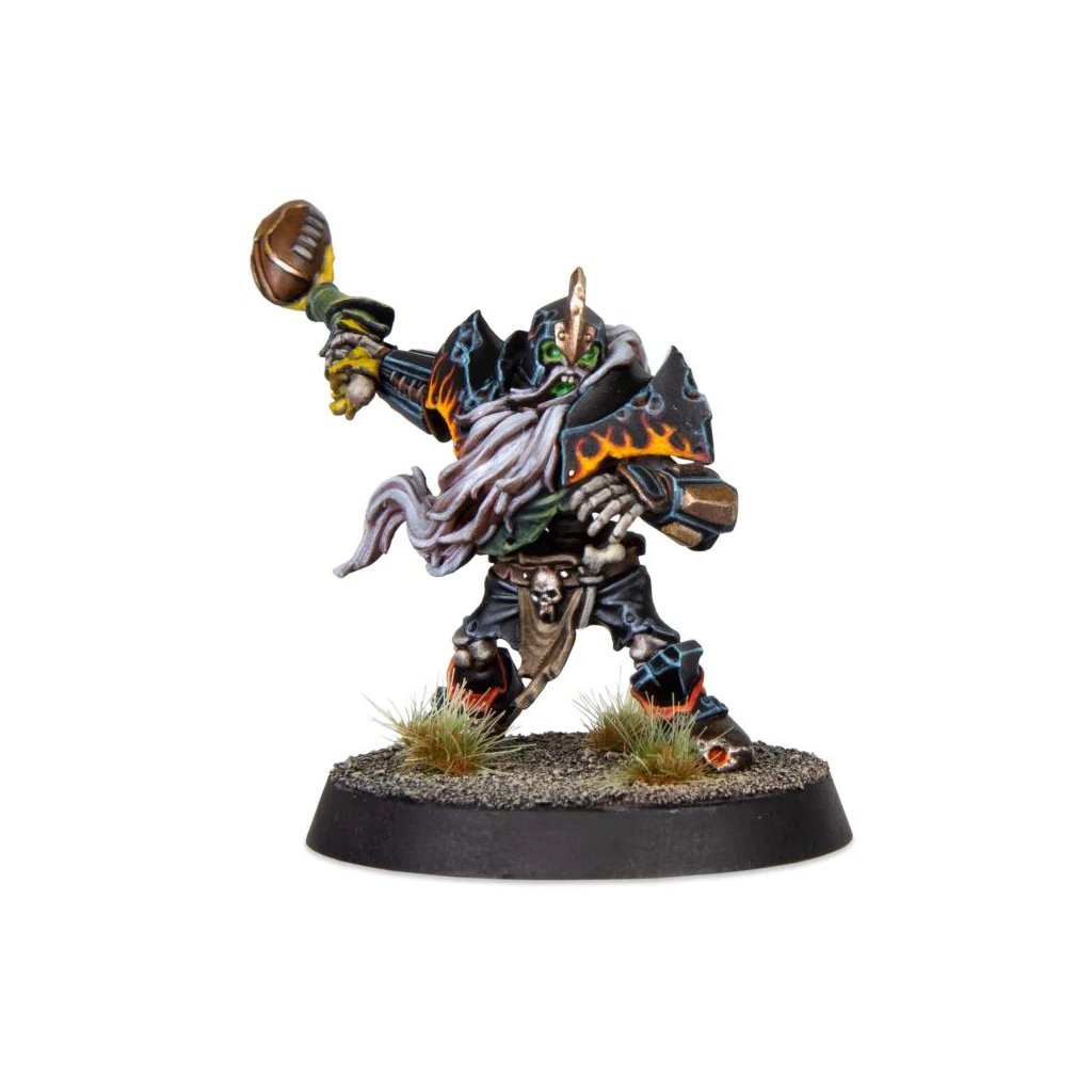 Description du produitDe temps en temps, un joueur qui brise le moule apparaît. Skrull Halfheight était un Nain doté d'une prodigieuse capacité de passe. Malheureusement pour Skrull, ses receveurs étaient des Nains, et alors qu'il attendait que l'un d'entre eux se mette lentement en position, l'adversaire exécuta un tacle qui mit fin à la carrière du malheureux lanceur. Ce beau jeu n'en avait pas fini avec Skrull, cependant, et il a été ressuscité par nul autre que le célèbre entraîneur Nécromancien, Tomolandry, désireux d'essayer un jeu long pour ses propres Champions de la Mort.