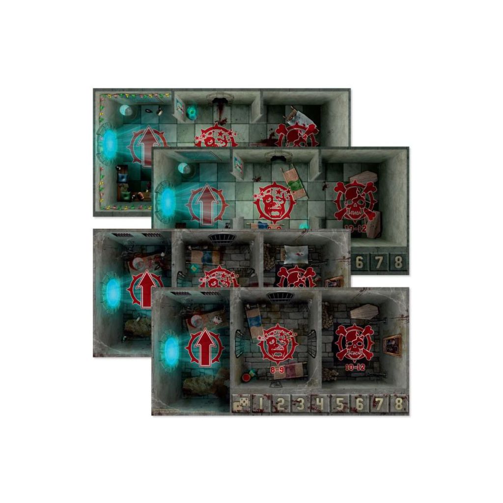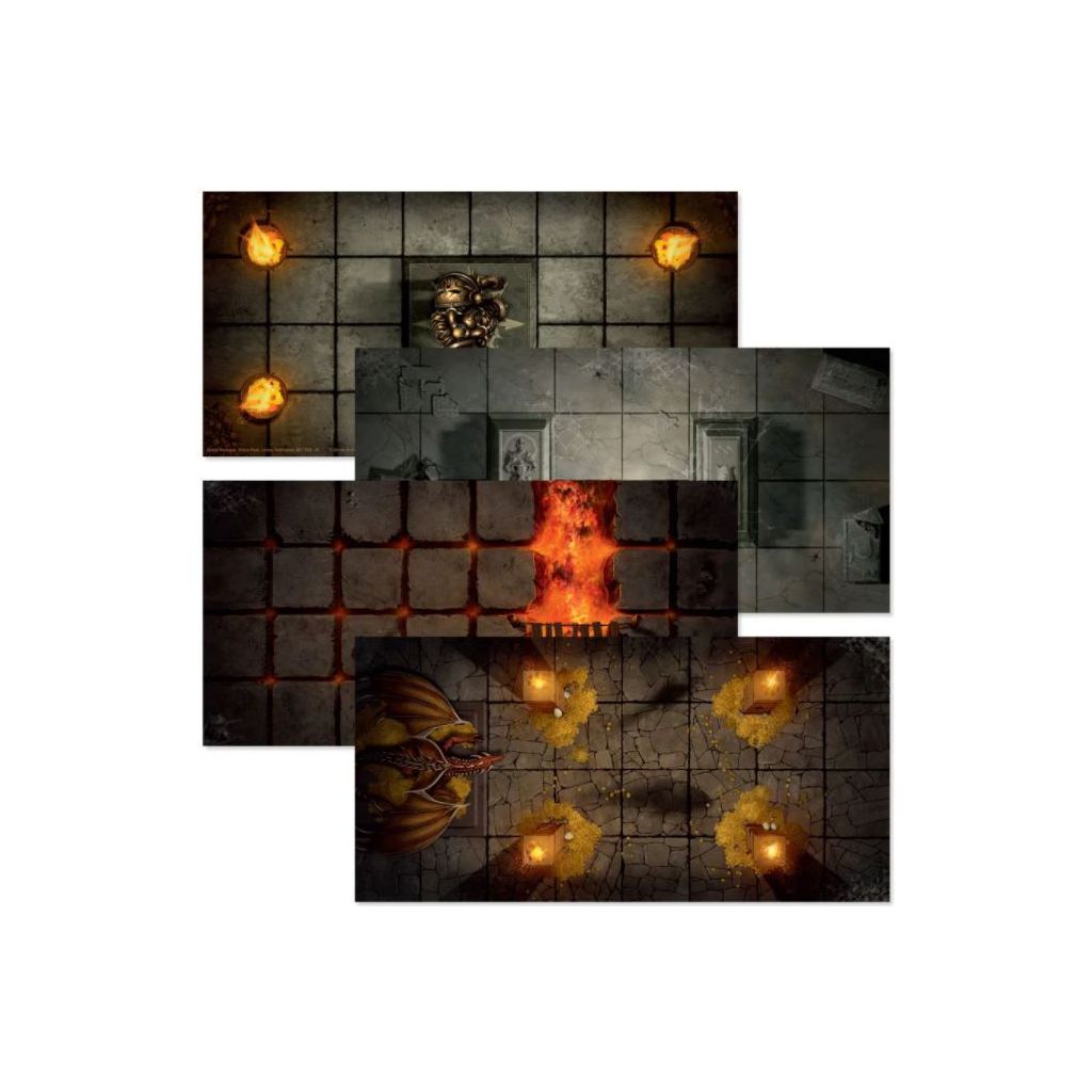 - 16x tuiles de donjon magnifiques et sinistres que vous utiliserez pour organiser votre donjon