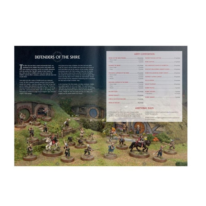 - Une étude approfondie des armées des Hobbits, avec des tactiques et des listes d'armées pour le Comté et les Rogues de Sharkey.