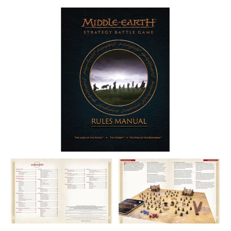 Cette boîte contient le manuel complet et intégral de 176 pages des règles du Jeu de Bataille Stratégique de la Terre du Milieu, couvrant à la fois les parties narratives et les parties jumelées avec vos figurines de la Terre du Milieu. Tout y est, des principes de base du mouvement et du combat à la mise en place d'engins de siège et au lancement de pouvoirs magiques, dans un format mis à jour, avec des photos d'armées magnifiquement peintes pour vous inspirer !