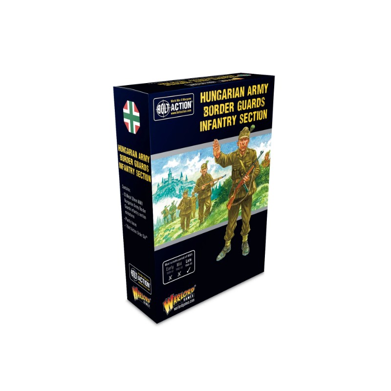La boîte contient dix gardes-frontières de l'armée hongroise (un sous-officier avec un SMG, un homme armé d'un LMG, un homme armé d'un lance-flammes, sept fusiliers), en métal, avec un dé d'ordre Bolt Action et des socles en plastique.