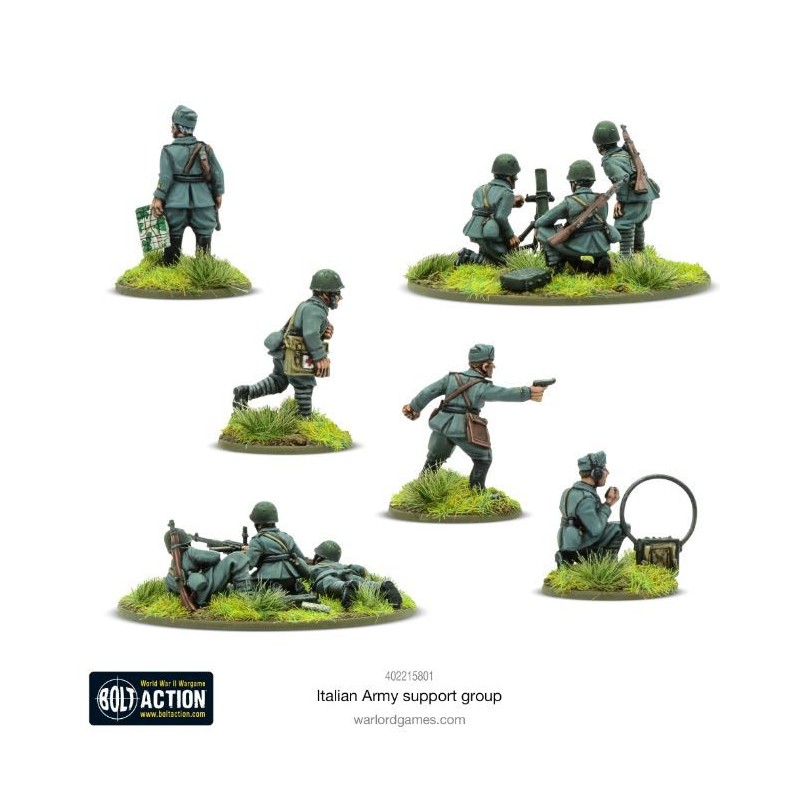 Contient les figurines en métal suivantes qui peuvent être déployées en tant que troupes de l'armée italienne ou des chemises noires :