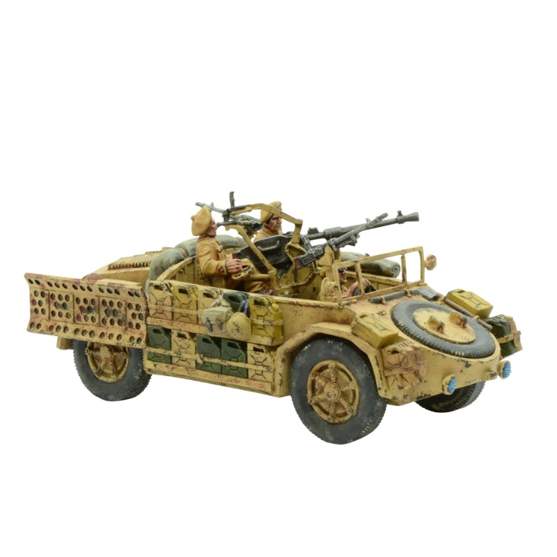 Description du produitBasé sur le concept éprouvé de la voiture blindée AB.41, l'AS.42 devait fournir aux forces italiennes des véhicules inspirés des tactiques efficaces des SAS britanniques et du Long Range Desert Group qui faisaient des ravages dans les zones arrière de l'Axe, abattant des avions sur les aérodromes, fournissant de précieux renseignements de reconnaissance et détruisant des dépôts de carburant vitaux.