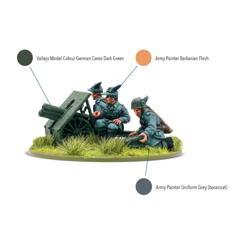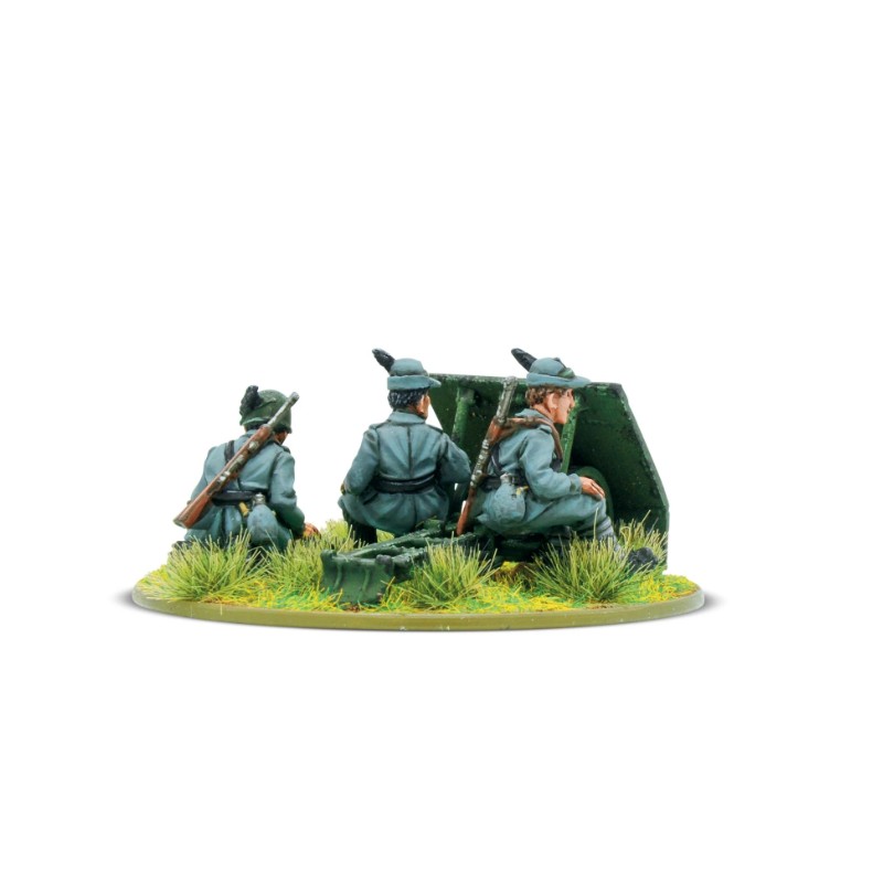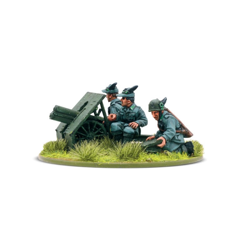 Le pack contient un Cannone 75/13 en métal, avec trois membres d'équipage Alpini italiens et un socle en plastique.