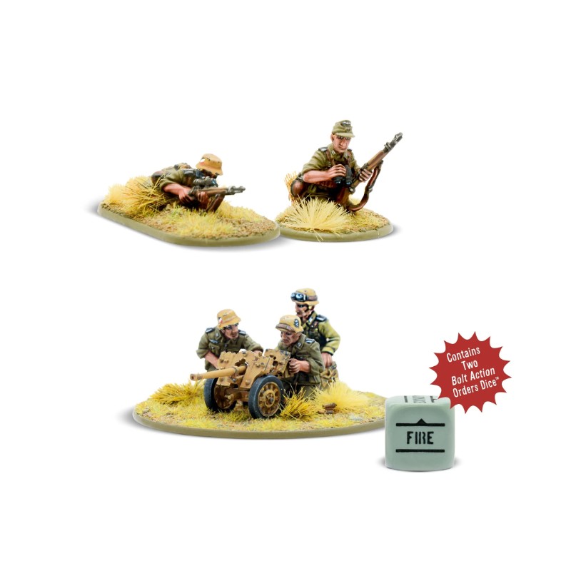 Contient deux dés d'ordre Bolt Action et les figurines Warlord Resin suivantes :