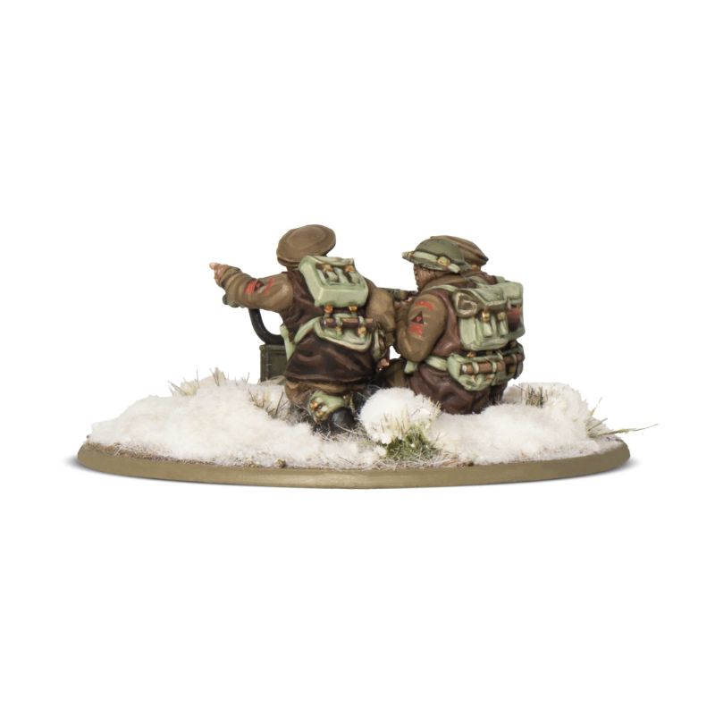Contient une mitrailleuse moyenne Warlord en résine avec trois membres d'équipage britanniques/canadiens (hiver) et des socles en plastique.