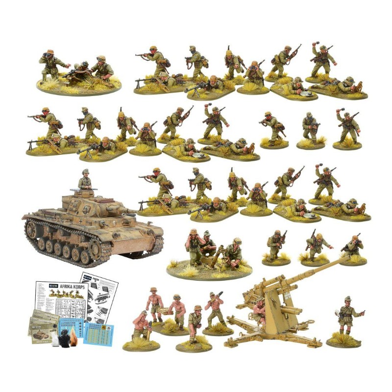 Avec le tristement célèbre 88, un tank Panzer III et plus de 30 hommes à commander c'est le set pour l' Afrika Korps que vous devez avoir ! À monter et à peindre.