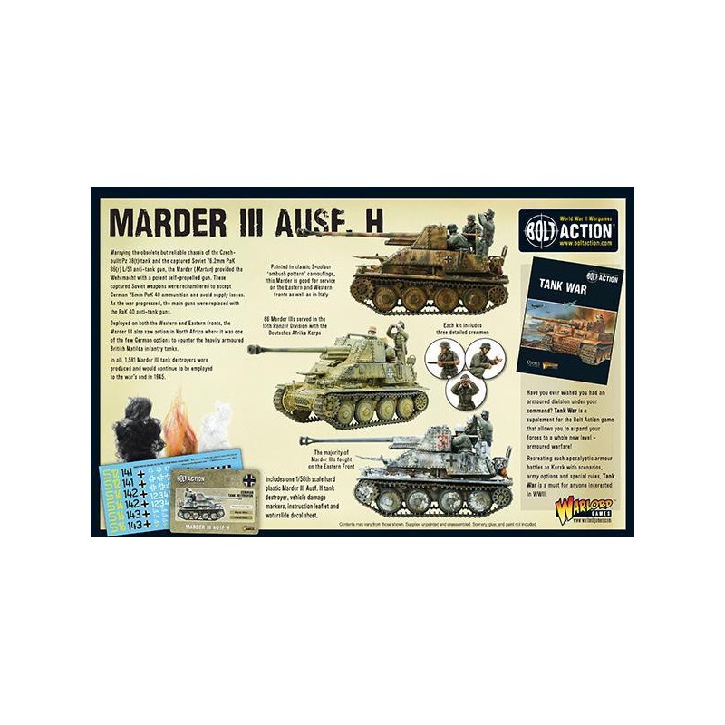 - A 1/56th scale hard plastic Marder III Ausf. H tank destroyer