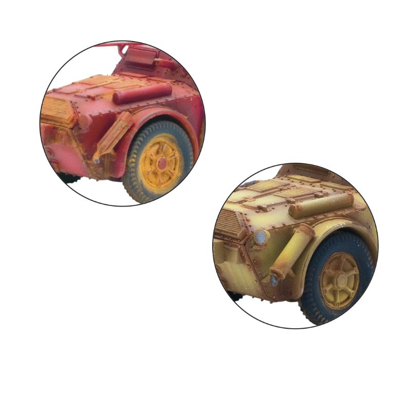 Les voitures blindées comme l'AB41/43 sont idéales pour former des pelotons blindés Bolt Action à un coût en points inférieur à celui de leurs homologues plus lourds.