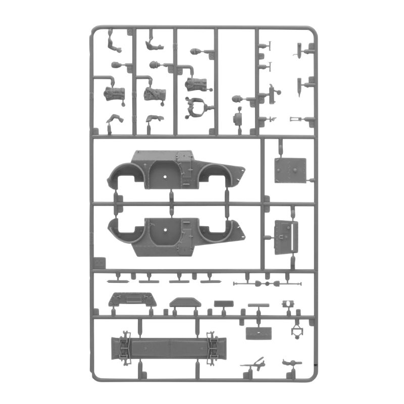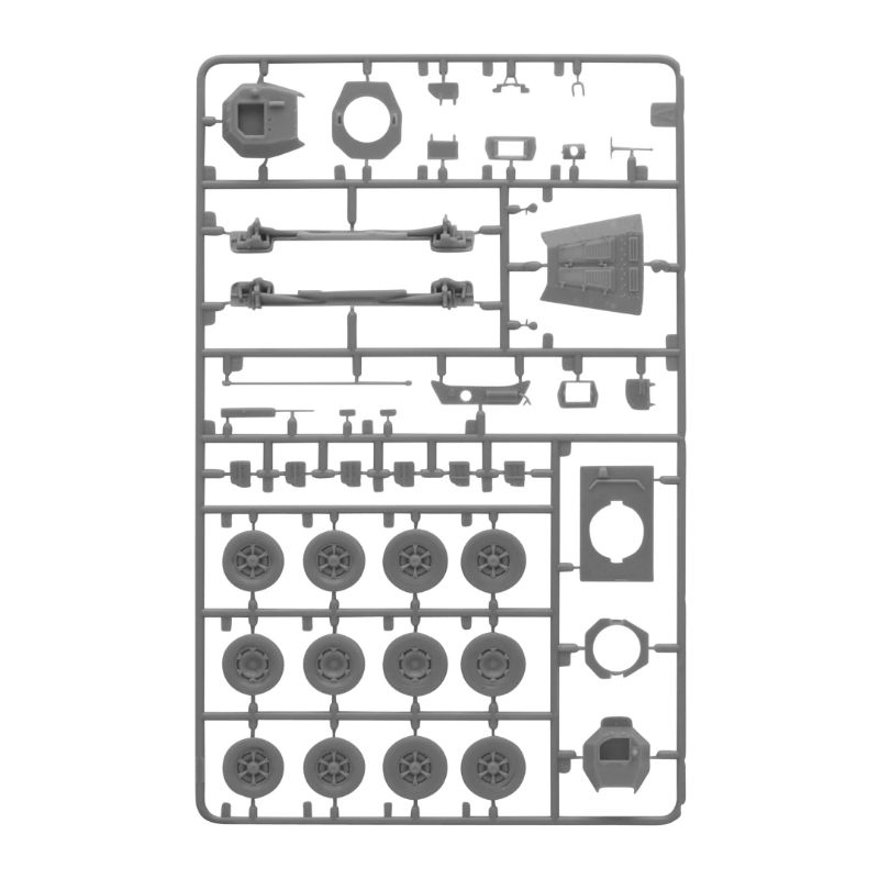 La boîte contient une voiture blindée Autoblinda en plastique qui peut être assemblée soit comme une AB41, soit comme une AB43, ainsi qu'une feuille de décalcomanies, une carte de statistiques de véhicule Bolt Action et des marqueurs de dégâts de véhicule.