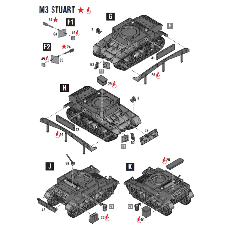 Description du produitAvant la guerre, beaucoup d'efforts ont été fournis pour la construction de chars légers, utilisés dans un rôle analogue à la cavalerie précédemment. Une fois que la guerre a commencé ces préceptes ont été rapidement remis en question, et la nécessité d'avoir des chars blindés armés plus lourdement et de meilleure qualité est devenue apparente. Le M3 a été dérivé du M2A4 d'avant-guerre: il en a conservé l'arme de 37mm et les 3 mitrailleuses de coque monté.