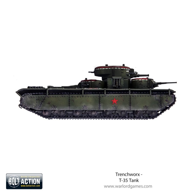 Bien qu'il soit hérissé d'armes, en raison de la peau relativement mince du T-35, il est évalué dans Bolt Action comme équivalent à un char moyen en valeur de dégâts. De plus, son manque de fiabilité se reflète dans ses règles spéciales; il gagne des marqueurs supplémentaires lorsqu'il est tiré.