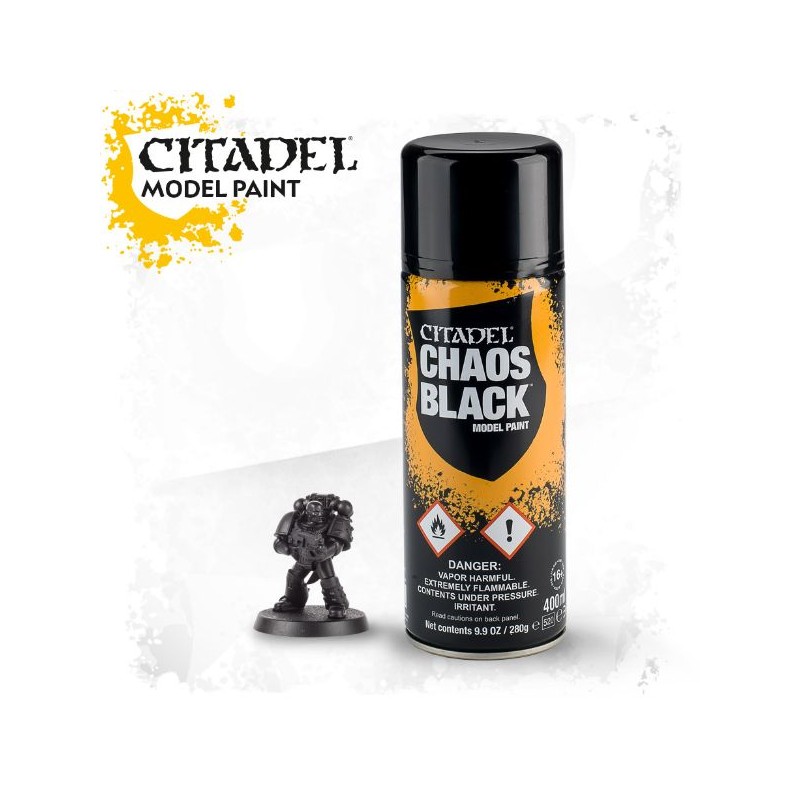 Description du produitLa bombe aérosol Chaos Black est conçue pour sous-coucher les figurines Citadel en plastique, en résine ou en métal. Reformulée pour des résultats optimaux, avec une teinte noire fantastique, c'est un moyen d'obtenir rapidement un apprêt uniforme sur les figurines.