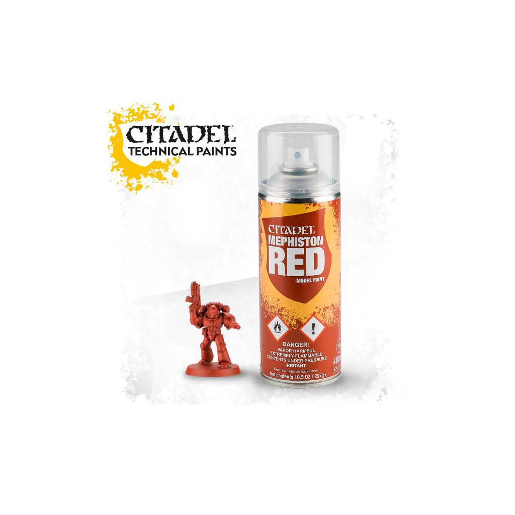Description du produitLa bombe aérosol de Mephiston Red est conçue pour appliquer une couche de base sur toutes les figurines Citadel. Vaporisée après une sous-couche, c'est un moyen efficace d'obtenir une couleur de base uniforme sur vos figurines.